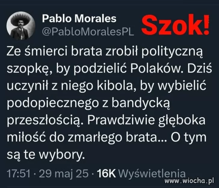 Naczelny gej kraju pluje swoim wyznawcom w twarz wystawiając gangusa, złodzieja, malwersanta, klamcę i zwykłego bandytę jako kandydata na prezydenta. Ten stary załupieżony gnom, dobrze wie kim są jego wyborcy i dobrze wie, że nawet gdyby swojego kota wystawił, to dostałby poparcie zbliżone do Nawrockiego. Żyjemy w kraju debili i nikogo już nie powinna dziwić nasza historia i losy Polski.