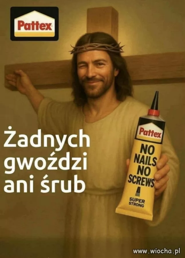 Tak mi się przypomniało "Był facet, który nazywał się Wilson i miał fabrykę sprzętu żelaznego: śrubki, gwoździe, nakrętki, łopaty, grabie itp. Postanowił zatrudnić gościa od reklamy, żeby nakręcił mu film reklamujący jego gwoździe. Ten przychodzi po tygodniu i pokazuje mu film, a tam rzymski żołnierz przybija gwoździami Jezusa do krzyża, pod spodem napis ”Gwoździe Wilsona utrzymają wszystko”. Wilson wpada w szał, mówi, że nie może czegoś takiego puścić w TV itp., że jego by ukrzyżowali za taki film itp. Gość obiecuje przyjść za tydzień z innym filmem, na którym ma nie być Rzymianin