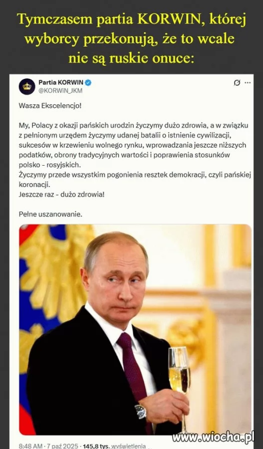 Korwin myśli, że tym lizusostwem załatwi sobie tytuł Namiestnika Księstwa Nadwiślańskiego, gdy Putin nas najedzie?