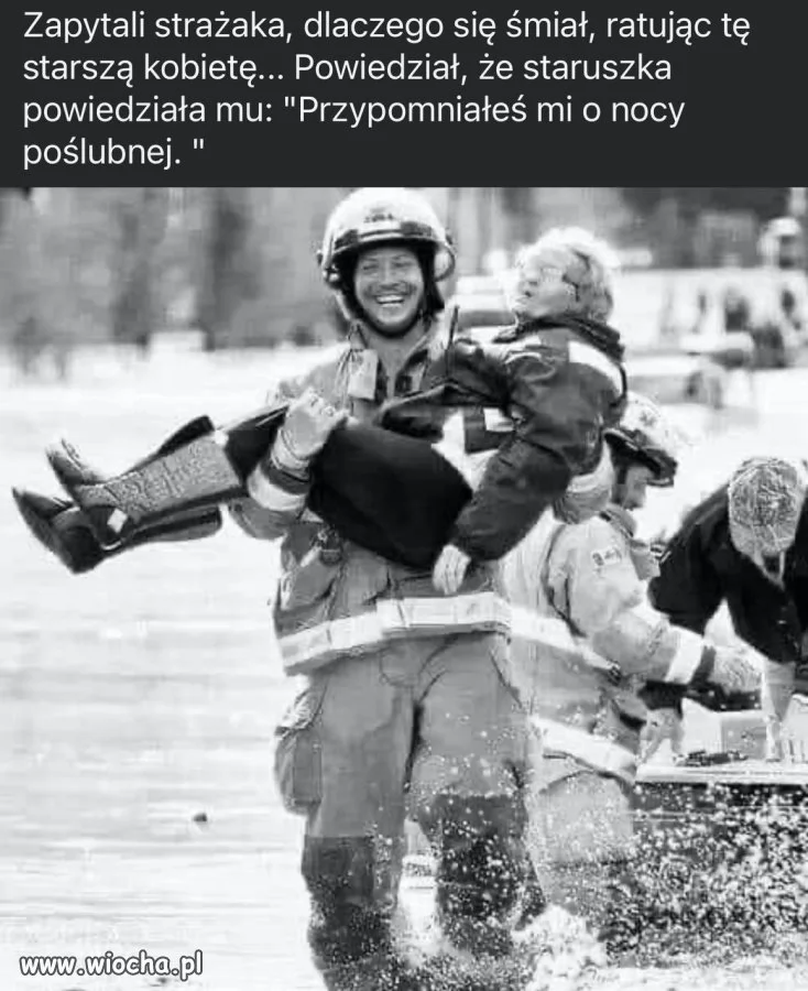 Strażak z odznaką, babcia z ripostą.