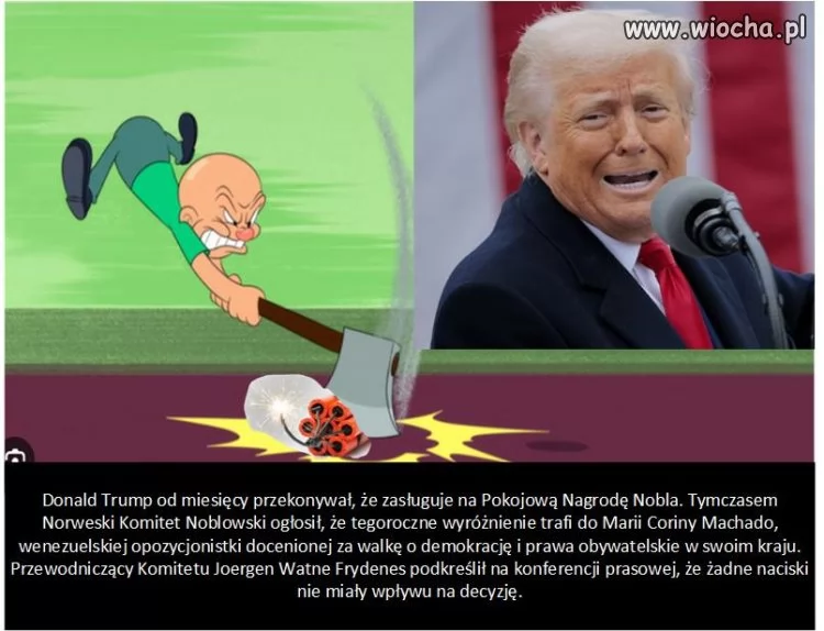 Nieoficjalnie wiadomo, że Trampek postawił warunek: nagroda wspólnie z Putinem i Netanjahu albo wcale.