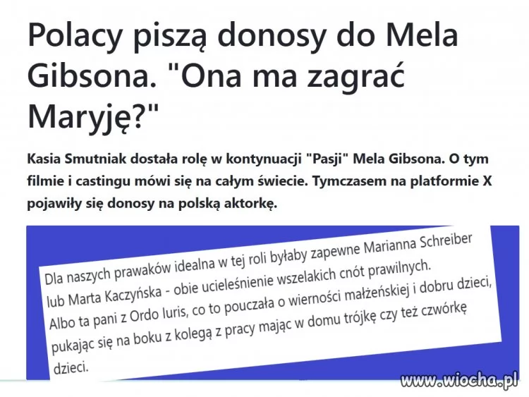 cóż, znając naszych nawiedzonych katolików, nawet gdyby byłaby to ta "oryginalna", prosto z chmury, to z wyglądem typowym dla Palestyny 2000 lat wstecz, pewnie i tak byłaby za mało matkoboska. mam wrażenie, że tu nie liczy się kto ją będzie grał, tylko o co można się przypier... yyy.. przyczepić, żeby pokazać wyższość swoich poglądów (religijnych), postawić na swoim, a przede wszystkim dowalić swoim przeciwnikom/grzesznikom.