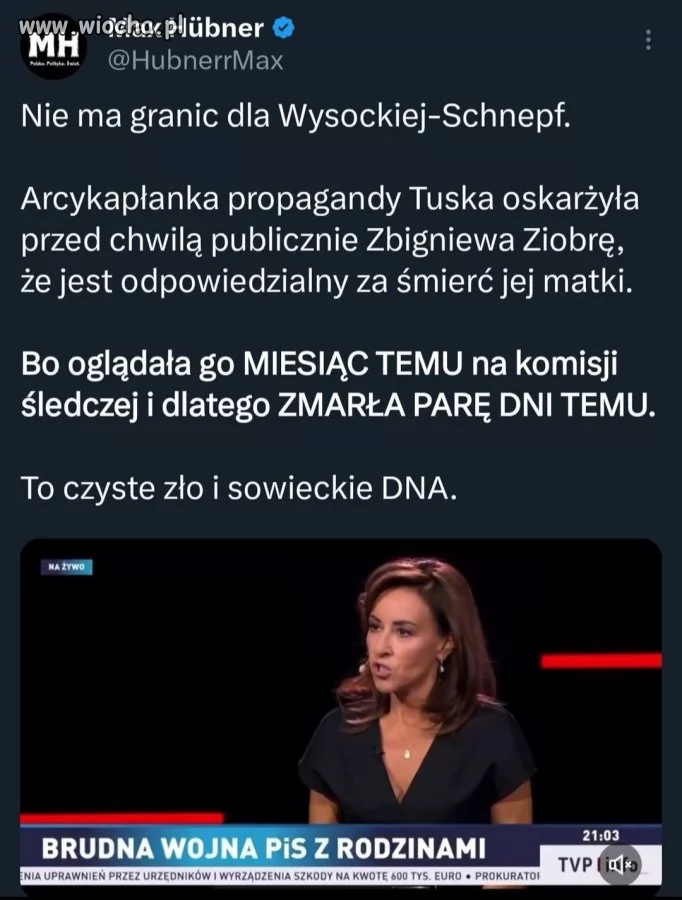 (...) Być może śmieje się z przypisanej mu sprawczości. Natomiast, panie pośle, mama pani Schnepf wysłuchała wystąpienia pana Ziobry na żywo, co przeżyła bardzo mocno. Po tym wystąpieniu, (...) w ubiegłą sobotę [18 października – red.] zmarła" - dla was prawdę powiedzieć to gorzej niż się zesrać w kościele. No ale jak Kaczyński oskarżał prokuraturę o zamordowanie pani Basi, bo zabił ją stres, gdyż zeznawała o rzeczonym Jarosławie to jakoś ci nie przeszkadzało ...