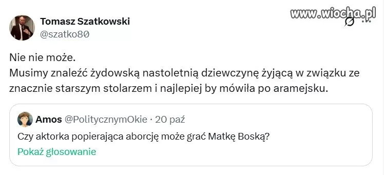 Jeśli aktorka popiera również in vitro, to może. Bo Matka Boska była prawdopodobnie pierwszą znaną kobietą zapłodnioną tą metodą.