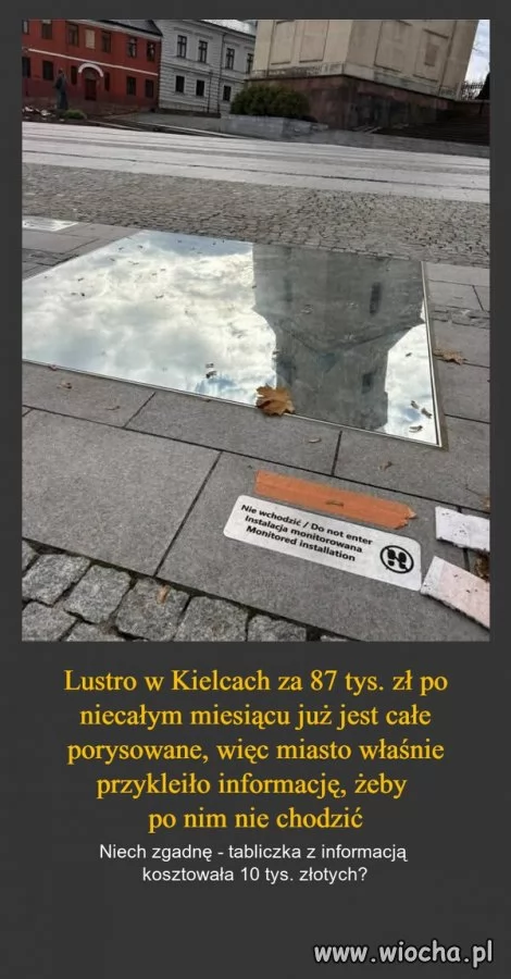 ja nie będę się wyzłośliwiał na władze Kielc, kupili, zamontowali trudno, ale jakie bydło mieszka w tych Kielcach? po co to deptać, łazić po tym, szurać, qwa, to już nie jest wina żadnego Tuska, kaczora to po prostu polskie dziadostwo