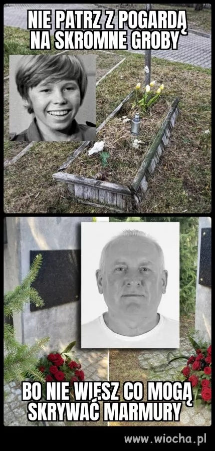 Ja patrzę z pogardą nie na groby, ale na ludzi, którzy zlecili wykonanie w uj drogich, w większości przypadków, w myśl zasady: "niech patrzą i zazdroszczą". Wyścig yebanych szczurów.