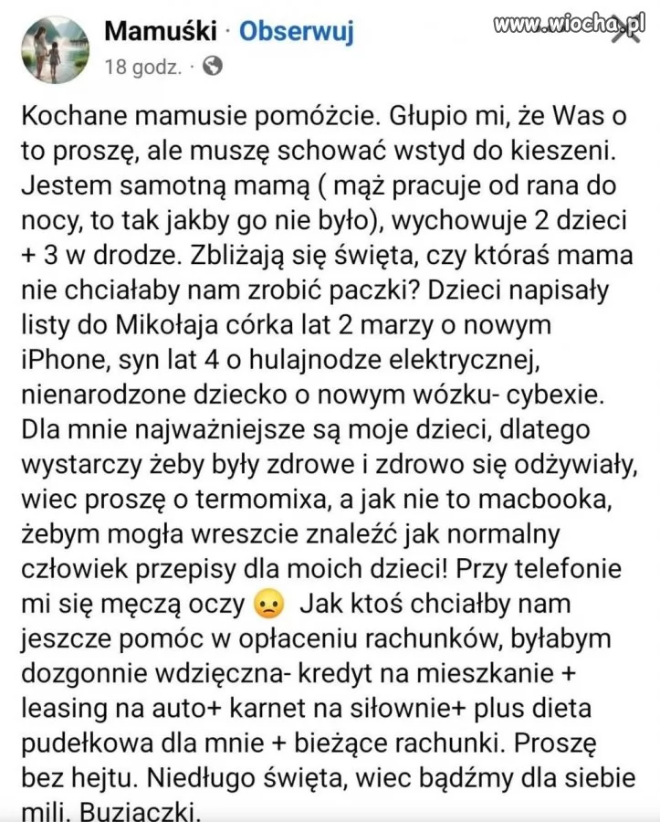 To może i ja się dołączę - kochane mamuśki poproszę Bugatti Chioron, do tego domek na Karaibach, myślę że nie za wiele jak na skromne święta? Proszę bez hejtu, w końcu święta idą...
