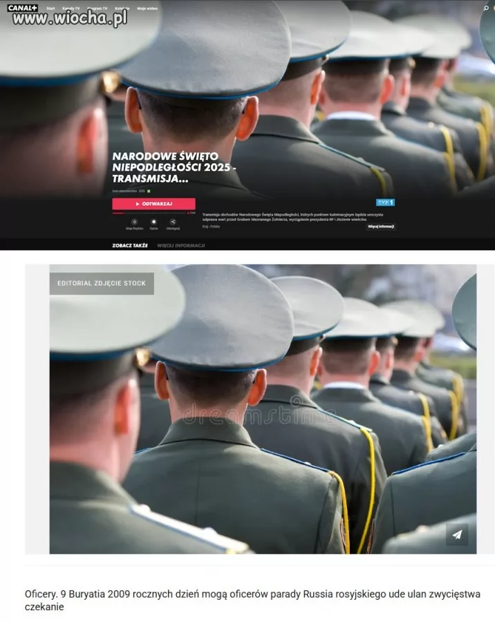 Canal+ ilustruje zdjęciem przedstawiającym ruskie wojsko transmisję TVP uroczystości 11.11.