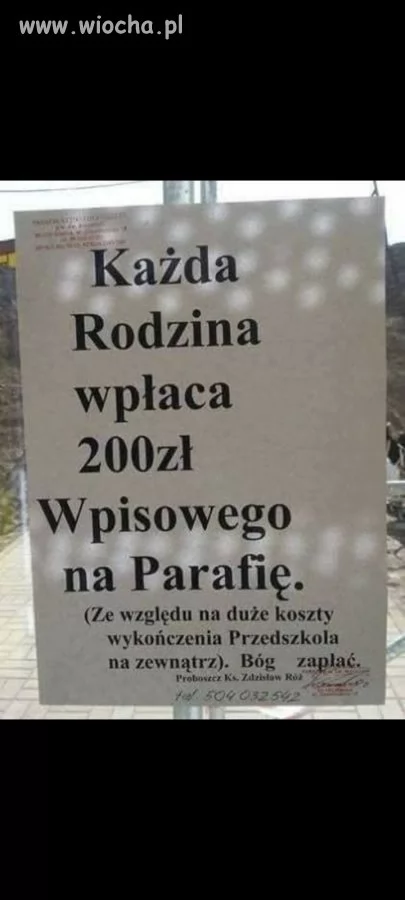 Zdjęcie pochodzi z parafii Świętego Krzysztofa w Gdańsku. Parafia prowadzi przedszkole publiczne, więc opieka nad dziećmi jest darmowa do 5 godzin. Ogłoszenie, to zbiórka na remont elewacji placówki.