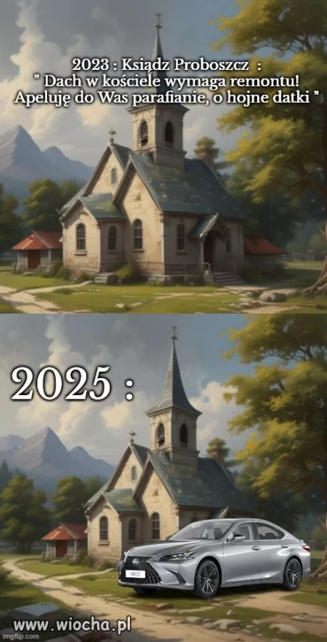Lexus ES 300h (prawdopodobnie). Do jazdy po wsi całkiem niezły, ale jak trzeba będzie pojechać z jakąś sprawą do kurii, to już trochę wstyd 😉