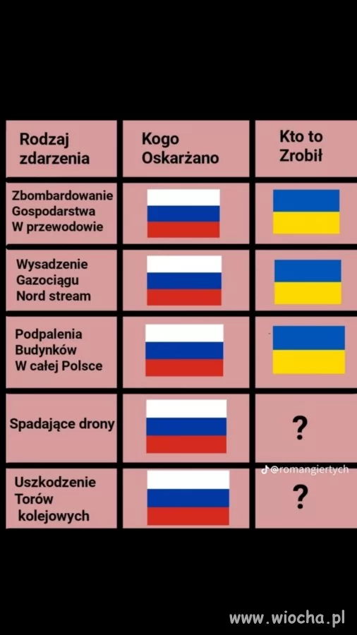 W związku z tym, że w Europie spada poparcie dla Ukrainy i Europejczycy nie mają ochoty więcej płacić, należy w UE wywołać strach przed Rosją. Ukraińscy dywersanci będą wysadzać pociągi, podpalać szkoły, zatruwać jedzenie w sklepach a po złapaniu twierdzić, że pracują na zlecenie rosyjskiego wywiadu.