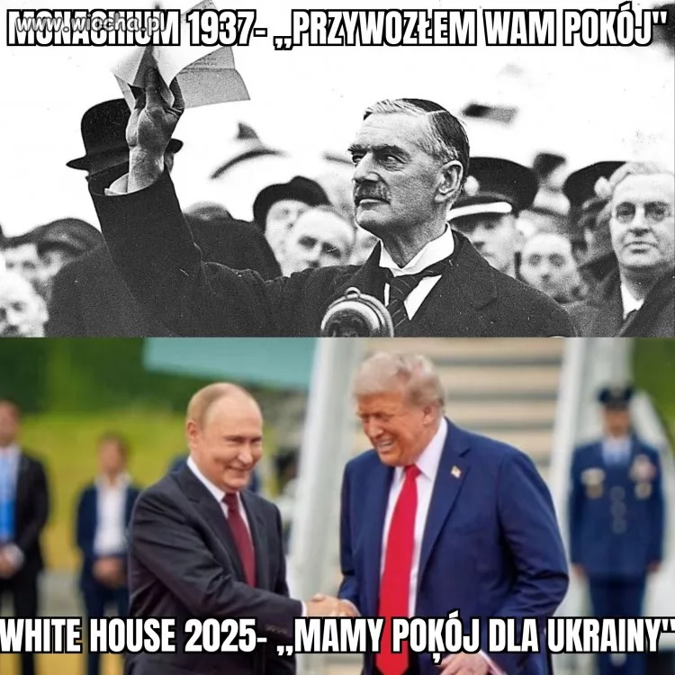 Czechosłowacje też zachód zmusił aby oddała swoje fortyfikacje! To samo chce zrobić Trump. Ukraina ma oddać swoje fortyfikacje w dobasiie przez które ruscy nie potrafiią przejśc ani otoczyć? Jeśli tam ma być taki pokój prawaki jak w czechosłowacji. To dla Polski lepiej aby czechosłowacja walczyła z III Rzeszą jako pierwsza a nie oddała swoje fortyfikacje!