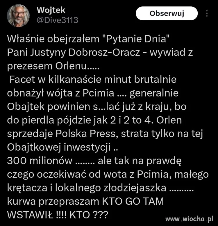 Panie Wojtku,ma pan rację, że powinien siedzieć.Tak by było gdyby mieszkał w innym kraju a nie w Polsce.Znowu będzie dużo gadania, powołanie specjalnych komisji, w których znajomi zarobią majątek i na koniec umorzenie z braku dowodów lub przedawnienia. Jak mówią w Polsce że pisiory kradli,ale się dzielili i teraz każdy jest umoczony.Wyglada na to, że jedynym uczciwym człowiekiem w tym rządzie jest Tusk, który powoli zaczyna rozumieć, że w Polsce nie ma miejsca na praworządność.