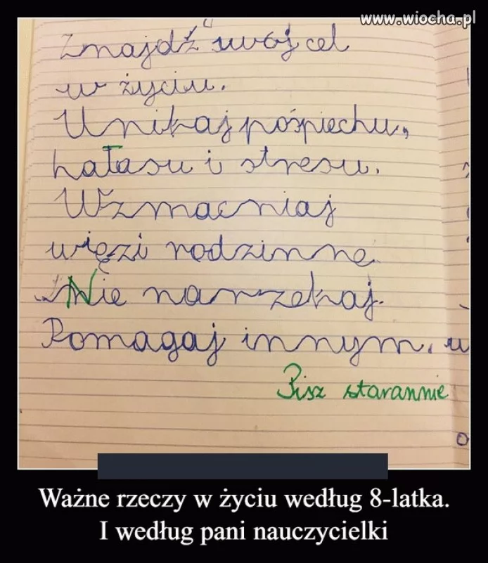 Przecież to tekst podyktowany przez rodzica to niech przynajmniej postara się przepisać go starannie.