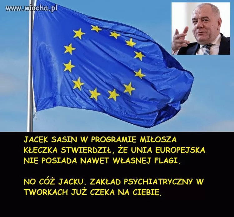 cóż, do szkoły chodził dawno temu, a "Unia" w jego czasach miała na fladze sierp i młot, więc może nie być na bieżąco z obecną sytuacją geopolityczną, o flagach nie wspominając - bystrzak jeden ;)