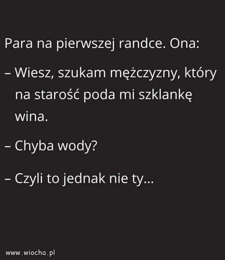 Był taki dowcip o facecie który się obawiał, że na starość nie będzie miał mu kto podać szklanki wody. A na starość stwierdził, że choć chętnych do podania wody nie brakuje, to "wcale mi się ku**a pić nie chce".