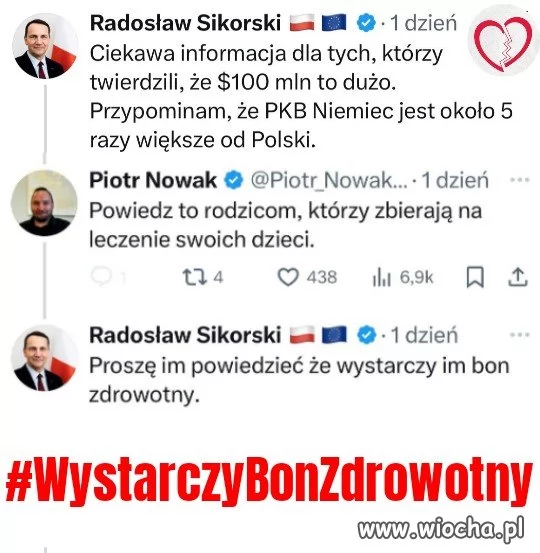 Wydaje 100mln dolarów ukrom w sytuacji gdy NFZ leży i kwiczy ,NIE to nie jest nagrywanie się z chorych polski wcale, a wrzutka o bonie medyczny to w tej sytuacji czyste kur3stwo
