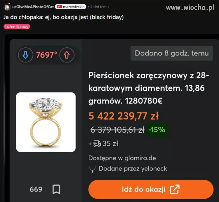 Mam nadzieję, że chłop sobie zmienił dziewczynę? Pomijając to, że może to być SCAM Jubilerski.