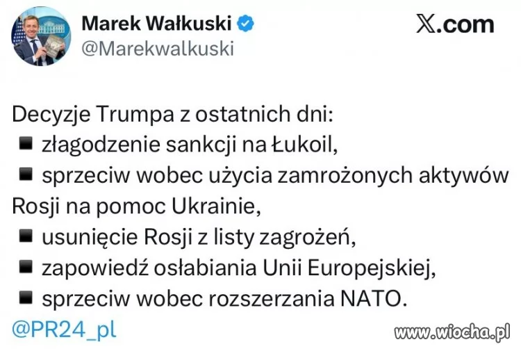 Kiedy wy zrozumiecie, że on ma dbać o bezpieczeństwo militarne i ekonomiczne Ameryki a nie innych państw. Połowa Amerykanów nie ma pojęcia gdzie leży Polska,i z pewnością nie chce wysyłać swoich dzieci by walczyli o bezpieczeństwo innych państw. Obudźcie się, Polska nie jest pępkiem świata.