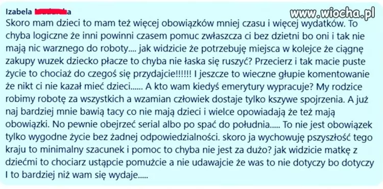 uwielbiam czytać wypociny "madek" co twierdza ze ludzie bez dzieci to w ogóle powinni pracować tylko na to żeby patusiarskie "madki" miały kasę