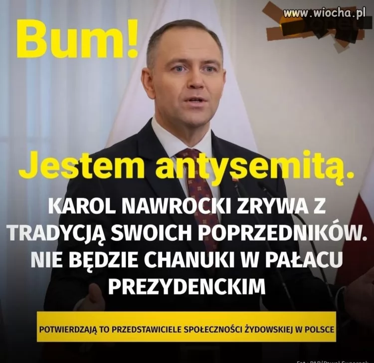 Nie lubię go ale to popieram. Skoro nie jest żydem to po co ta szopka? Może jeszcze Koran niech poczyta, i buddyjskie kadzidełka zapali.