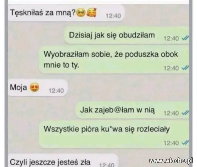 Poduszka oberwała pierwsza, a on dalej myśli że to była tęsknota.