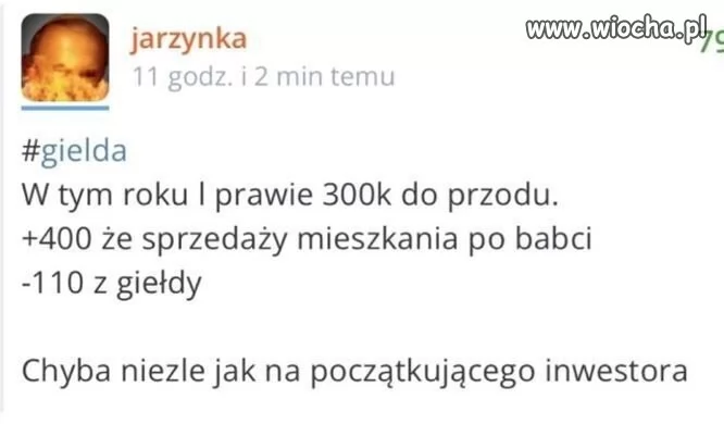 Jeśli cała inwestycja to te pieniądze ze sprzedaży mieszkania. To super. Stracił tylko ponad 25%, nie stracił wszystkiego.
