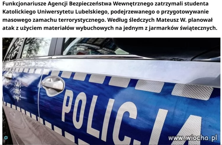 Zatrzymany mężczyzna aktywnie pozyskiwał wiedzę na temat samodzielnego wykonania materiałów wybuchowych, które miały posłużyć do przeprowadzenia aktu terrorystycznego. Planował także wstąpienie do organizacji terrorystycznej, w celu uzyskania pomocy w realizacji zamierzonych działań. Celem przestępstwa było zastraszenie wielu osób oraz wsparcie Państwa Islamskiego (ISIS), przekazał Dobrzyński. zapomniałeś akuszer tego dodać