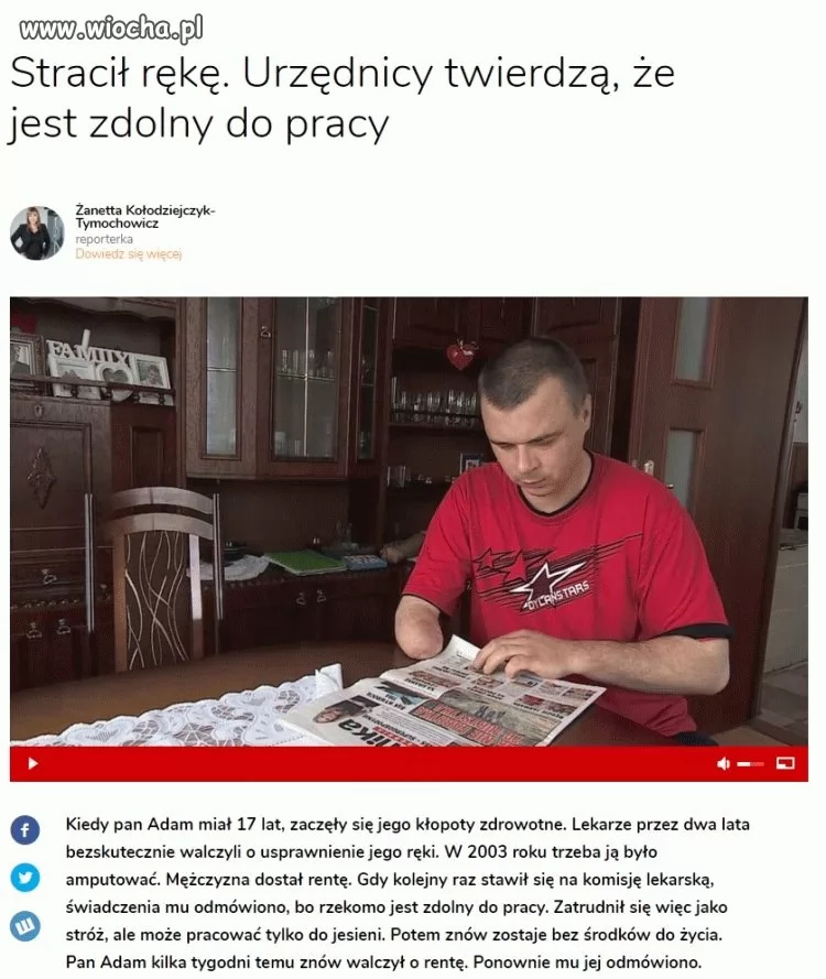 Bo prawdopodobnie jest zdolny do niektórych prac. Ale jest też renta z tytułu częściowej niezdolności. I tu miałby duże szanse w sądzie.