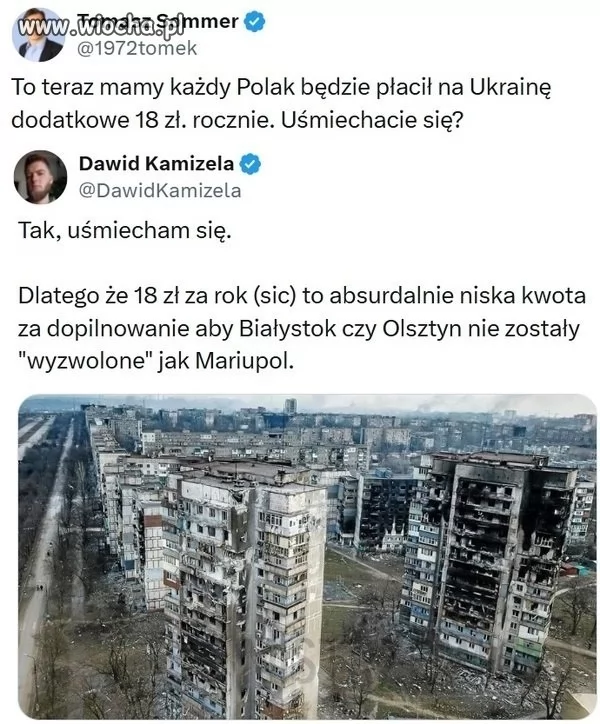 ehhh widać ze serio osoby co maja na pierwszym miejscu pomoc ukrainie gdzie już jej dostali od Polski od uja a my z zamian tylko obrażanie i "incydenty" dalej nic nie kumaja. ruskie cepy nie zajmą ukrainy bo jest to fizycznie niemożliwe, gospodarczo i ekonomicznie to aktualnie trup a militarnie to za chwile będzie. od 3 lat nic nie robia ludzie tylko straszą ze jak nie płacisz ukrainie to cepy ja cala zajmą. a teraz z drugiej strony na ukrainie wojna a politycy maja na koncie już 3 afery z defraudacja kasy z UE i USA, handel bronią co prawda zdobyczna ale zawsze, kurort narciarski za miliony