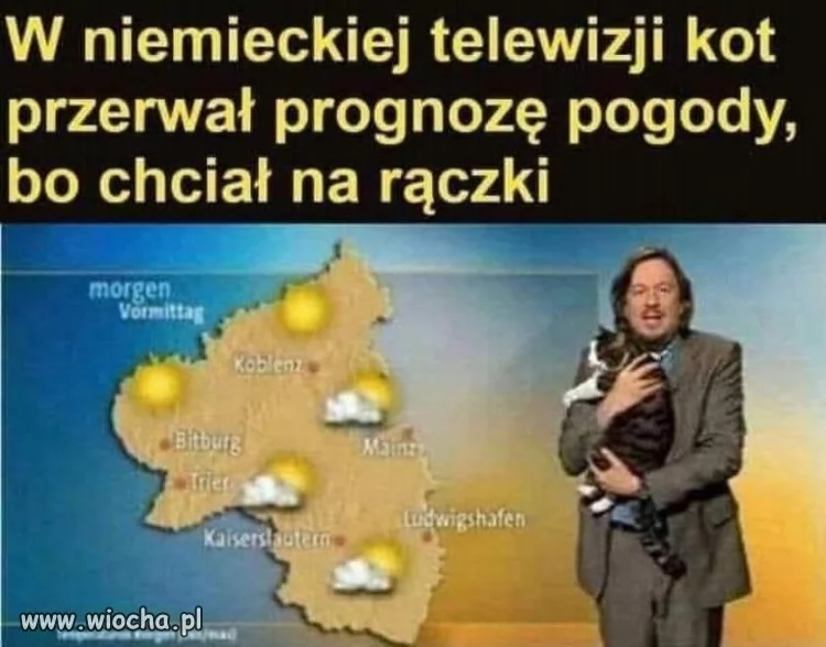 Kot chciał na rączki - znaczy będzie zimno, bo kot ciepła szuka :)