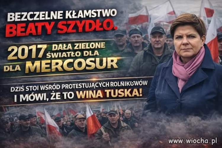 Zboże z Ukrainy wjeżdżało bez żadnej kontroli, rolnicy bankrutowali, gospodarstwa upadały, a wy w tym czasie zajmowaliście się własnymi interesami, układami, przekrętami, które stały się waszą codziennością, a dziś próbujecie udawać obrońców polskiego rolnictwa, choć to właśnie wasza polityka doprowadziła do chaosu, do ruiny, do sytuacji, w której polska wieś została wystawiona na żer. Beata Szydło w 2017 roku dała zielone światło dla Mercosur, podpisała konkluzje Rady Europejskiej, nie protestowała, nie biła na alarm, nie broniła polskich rolników, a dziś staje wśród protestujących i udaje, ż