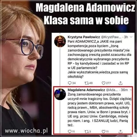 Czyli Pani Adamowicz ma więcej pokończonych szkół, niż wszyscy pisowcy razem wzięci :D