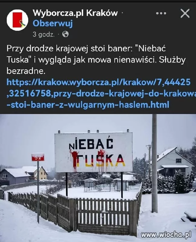 Mowa nienawiści????? Tu tylko jest napisane niebać Tuska i to jeszcze u niego na działce. To co powiecie o ośmiu gwiazdkach namalowanych na płotach, drogach, przystankach, znakach drogowych i budynkach? Wandalizm i hipokryzja lewacka nie zna granic.