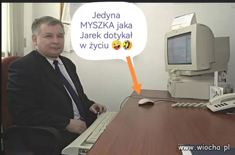 To jest Jarek, ale tej myszki też nie dotknął. Ma ją po lewej stronie, a jest praworęczny. To tylko ustawka do zdjęcia. Pomyślcie chwile: gość, który dopiero niedawno zakładał rachunek, jak mu ZUS nie chciał emerytury przelać umie obsługiwać kompa? Aktualne zdjęcia pokazują, że asystuje tylko przy wpisach na portalach.