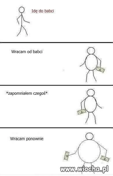 Babcie nie wiedza ze macie 800 plusy. I ze nie ma już głodu w Polsce nie trzeba dawać żarcia. Macie pod dostatkiem u sebie.