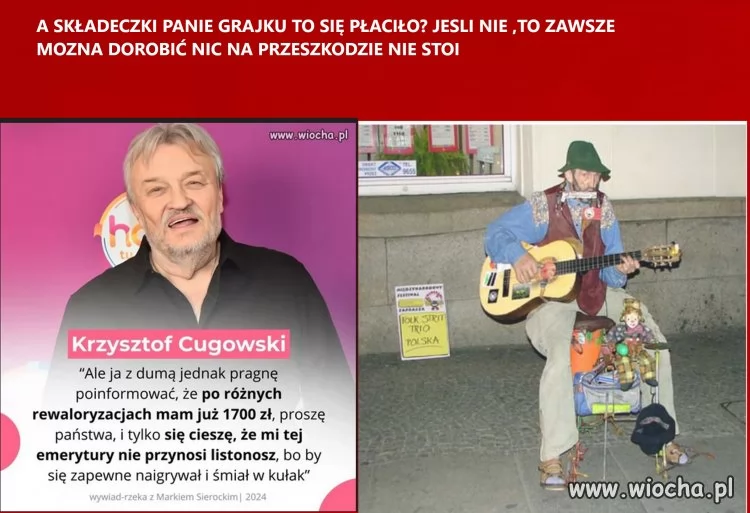 Zrobił to, co robi 99,99% polskich artystów. Nie płaci składek lub płaci minimalne. Jak młody to król życia, a kasa płynie. Na starość ręka w nocniku i płacz że emerytura niska.