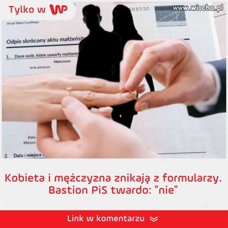 Właśnie absurd polega na tym, że znikają z formularzy dla wszystkich. Z powodu jakiegoś niewielkiego odsetka małżeństw jednopłciowych zawartych w innym kraju (w Polsce nie ma takiej możliwości) zmieniamy formularze dla wszystkich małżeństw. Paranoja 🤦