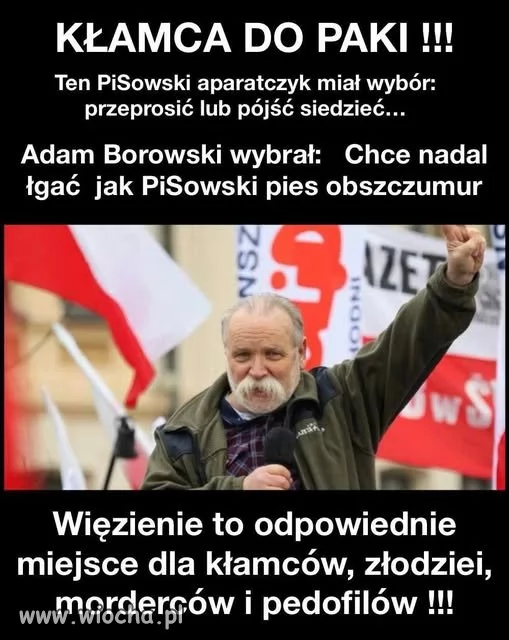 A znasz wyrok? Czyli każdy może lżyć na każdego i go pomawiać? Bo działacz to mu wolno więcej, czy lepszy od innych? Sąd wstrzymał wykonanie wyroku, bo obiecał, że przeprosi i Giertych się zgodził. Nie przeprosił, to sąd ponownie nałożył karę. Nie dość, że pomawia, to jego słowo nic nie warte - człowiek bez honoru, jak większość prawaków. Za chwilę będzie kolejny azylant na Węgrzech. Ja rozumiem, że prawactwo przyzwyczajone, że w ich szczujni można wylewać gnojówkę na dowolną osobę, ale w realu już nie, bo prawa muszą przestrzegać wszyscy i nie zawsze trafi się na neo-sędziego, który pomoże.