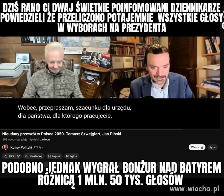 A to wszystko to nieprawda, bo ja wygrałem. Kot kurdupla też, był zaraz za mną. Ja tylko się zastanawiam, czy są jakieś standardy kandydowania? Może wystawić jakiegoś mordercę, który będzie prowadził kampanię zza krat, jak mu nie odbiorą praw publicznych. Jak naciągacz i oszust starszych osób w ogóle może kandydować i reprezentować kraj? To tutaj są tylko oszuści i złodzieje? Pewnie tak, na szczęście tylko u prawaków.