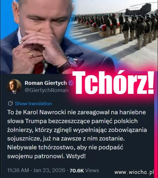 O jakich fikołkach mówisz? Propagandysta, półanalfabeta kacynskocwelaankanissanokrecik napisał, że Nawrocki nie zareagował na słowa Trampa wiec wstawiłem cytat udowadniając, że to nieprawda. Następny kłamie tak jak zając;-)) Czasem się tylko zastanawiam w takich sytuacjach czy to celowe kłamstwa czy zwyczajna niewiedza połączona z głupotą.