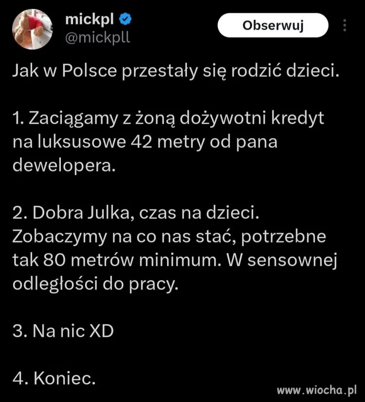 Deweloperzy niszczą ludzkość. Powinno wrócić budownictwo państwowe. Może nie było tak ładne jak prywatne bloki ale spełniało swoje zadanie i dalej spełnia.