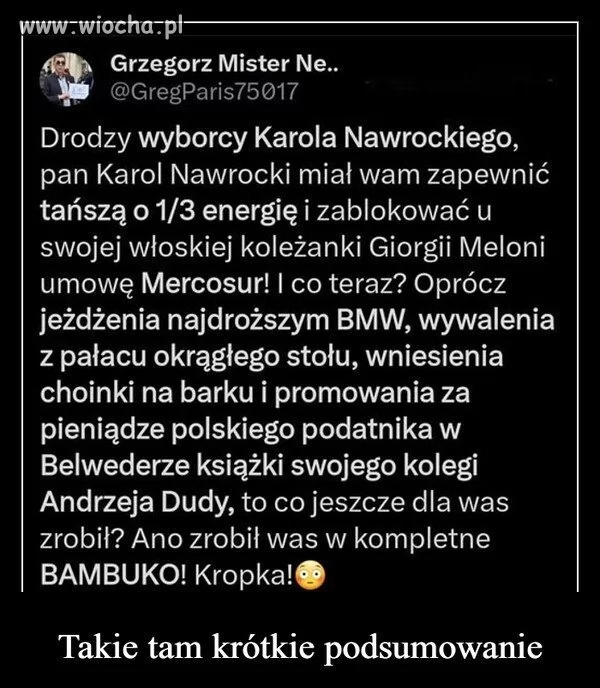 Batyr nabrał swoich tanim prądem, Tusk zrealizował 1/3 konkretów. Dobrze widać, że "som po jednych piniondzach" :)