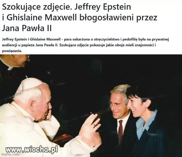 Jan Paweł II błogosławi Jeffreya Epsteina i Ghislaine Maxwell.