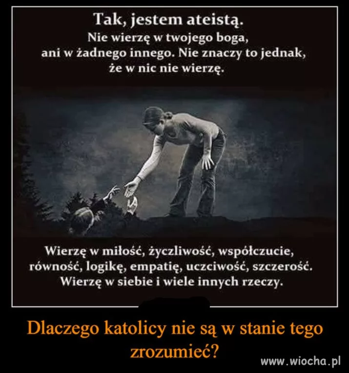 Prawaki nie wierzą w to ze można być po prostu dobrym człowiekiem. Bo oni gdyby nie bali się piekła. To by zaraz kradli, gwałcili i mordowali. Prawaki tylko dlatego tak nie robią gdyż boją się kary. Tej na ziemi trochę ale mniej bo tu Nawrocki ułaskawi Orban da azyl. Bardziej tej po śmierci ale też mało. Bo nat kanprawdę prawaki też nie wierzą w boga. Albo myślą ze bóg jest po ich stroniie tak jak był po stronie Adolfa Hitlera. Przecież to oczywiste ze był bo papież był po jego stronie co nie prawaki. A po waszej jest dobry Ksiądz Rydzyk. No to pójdziecie do nieba przecież.