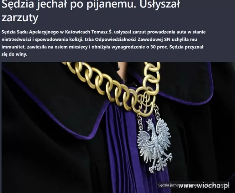Ty nie rozumiesz o czym ty piszesz! nie rozumiesz czym jest izba odpowiedzialności zawodowej dla sędziów! Co innego z zarzuty karne za jechanie po pijaku i spowodowanie kolizji tu jest standardowo jak w przypadku każdego obywatela. A za to że jest sędzią który moralności powinien przestrzegać, to dostaje inną karę zawodową! Czego nie rozumiesz napisać ci to dużymi literami? a może na migi? a może znaki dymne puścić co?