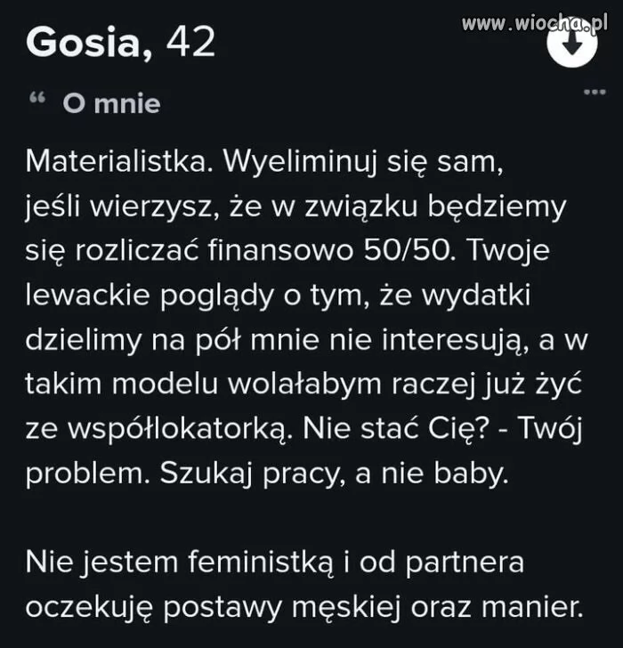 Cyli prawacka kobieta to tylko roszczeniowy nierób. Istnieje jedynie po to, aby drzeć mordę w domu i zgłaszać oczekiwania, dając w zamian swoje marne istnienie. Do tego tępa i zacofana. Fajne macie prawaki te swoje babki. Chyba wówczas też wolałbym mieszkać z kolegą.