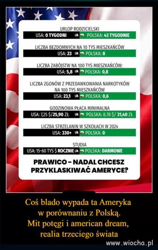 @typhon - w każdym porównaniu USA wypada gorzej. Nawet w polityce są 100-120 lat do tyłu, choć doceniam - ówczesne pomysły przebijają z rozmachem godnym Ameryki. Lenin powiedział, że państwem może rządzić kucharka? No to u nas będzie Pomarańczowa Małpa. Kiedyś była "dyplomacja kanonierek"? No to u nas będą lotniskowce. Itd., itp...