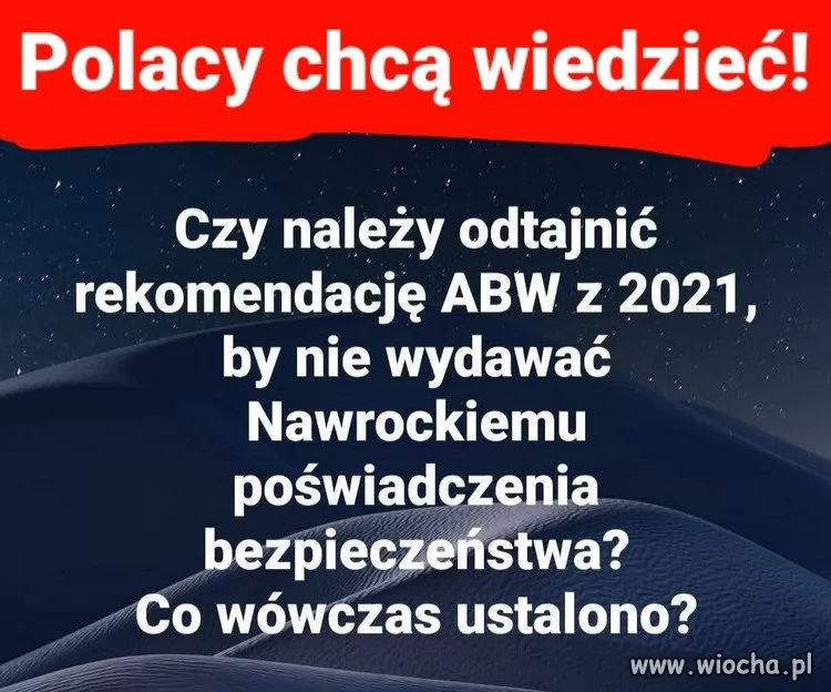 "Dysponujący całością wiedzy, w tym między innymi na temat negatywnej rekomendacji funkcjonariusza analizującego akta postępowania, ówczesny Szef Agencji Bezpieczeństwa Wewnętrznego Krzysztof Wacławek (obecny doradca Prezydenta RP) podjął decyzję o wydaniu Karolowi Nawrockiemu poświadczenia bezpieczeństwa" Wacławik nie zaprzeczył, że wydał poświadczenie bezpieczeństwa "wbrew ważnej i negatywnej rekomendacji funkcjonariusza analizującego akta postępowania".