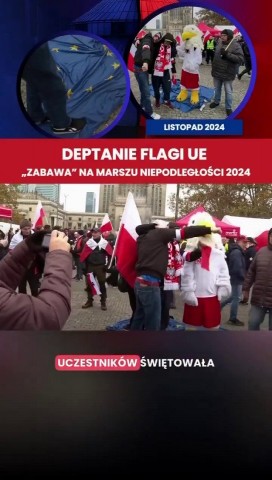Mój znajomy jakub1975wawa skomentował absurd: Depczą flagę UE, depczą flagę Ukrainy.
